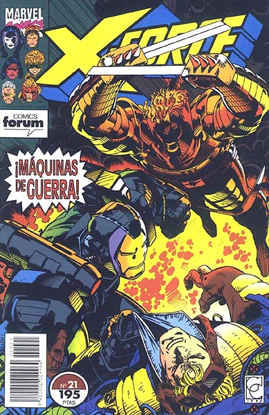 Cuaderno de historietas grapado de 32 páginas interiores en color más cubiertas que contiene la traducción del comic book original X-Force volume 1 número 21 publicado en USA por Marvel Comics. Colección de 42 volúmenes.