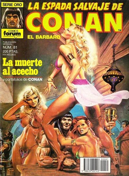 Conan the Barbarian fue una serie de comic books de fantasía heroica, casi pionera en su género, que fue un éxito de ventas, de público, e incluso de crítica, haciéndose merecedores la serie y sus creadores de numerosos premios de la época. Conan nació de la mente del autor tejano Robert E. Howard en 1932 y ha mantenido su presencia en el mercado de los cómics yanquis durante veintitrés años ininterrumpidamente con el comic book Conan the Barbarian, y otro lapso de tiempo semejante en el formato de revista en blanco y negro, con las cabeceras Savage Tales, The Savage Sword of Conan y Conan the Savage, una cifra no igualada por ninguna publicación de igual índole en los Estados Unidos. (...) Manuel Barrero.