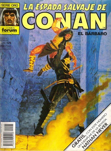 Conan the Barbarian fue una serie de comic books de fantasía heroica, casi pionera en su género, que fue un éxito de ventas, de público, e incluso de crítica, haciéndose merecedores la serie y sus creadores de numerosos premios de la época. Conan nació de la mente del autor tejano Robert E. Howard en 1932 y ha mantenido su presencia en el mercado de los cómics yanquis durante veintitrés años ininterrumpidamente con el comic book Conan the Barbarian, y otro lapso de tiempo semejante en el formato de revista en blanco y negro, con las cabeceras Savage Tales, The Savage Sword of Conan y Conan the Savage, una cifra no igualada por ninguna publicación de igual índole en los Estados Unidos. (...) Manuel Barrero.