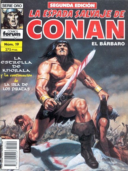 Conan the Barbarian fue una serie de comic books de fantasía heroica, casi pionera en su género, que fue un éxito de ventas, de público, e incluso de crítica, haciéndose merecedores la serie y sus creadores de numerosos premios de la época. Conan nació de la mente del autor tejano Robert E. Howard en 1932 y ha mantenido su presencia en el mercado de los cómics yanquis durante veintitrés años ininterrumpidamente con el comic book Conan the Barbarian, y otro lapso de tiempo semejante en el formato de revista en blanco y negro, con las cabeceras Savage Tales, The Savage Sword of Conan y Conan the Savage, una cifra no igualada por ninguna publicación de igual índole en los Estados Unidos. (...) Manuel Barrero.