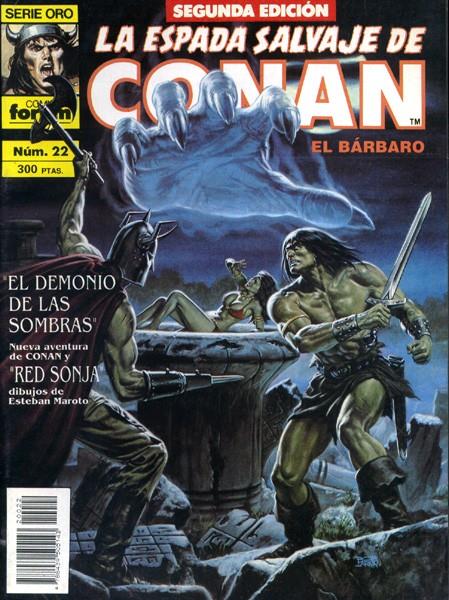 Revista de historietas grapada de 64 páginas interiores en blanco y negro más cubiertas en color que contiene la traducción de los comics originales The Savage Sword of Conan Volume 1 números 1 y 82 publicados en USA por Marvel Comics entre 1974 y 1995. Continuación de la serie de 11 volúmenes de Super Conan esta colección es una reedición de 1995 de los primeros 144 números de la colección de 171 números de la primera edición.