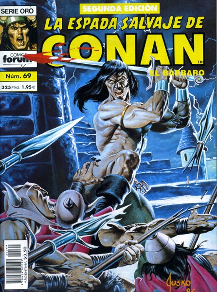 Conan the Barbarian fue una serie de comic books de fantasía heroica, casi pionera en su género, que fue un éxito de ventas, de público, e incluso de crítica, haciéndose merecedores la serie y sus creadores de numerosos premios de la época. Conan nació de la mente del autor tejano Robert E. Howard en 1932 y ha mantenido su presencia en el mercado de los cómics yanquis durante veintitrés años ininterrumpidamente con el comic book Conan the Barbarian, y otro lapso de tiempo semejante en el formato de revista en blanco y negro, con las cabeceras Savage Tales, The Savage Sword of Conan y Conan the Savage, una cifra no igualada por ninguna publicación de igual índole en los Estados Unidos. (...) Manuel Barrero.