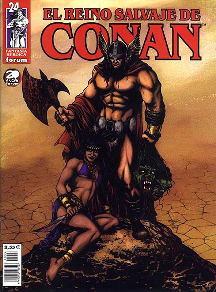 El reino salvaje de Conan, todo un magazine en blanco y negro que no sólo os ofrecerá de manera ordenada las andanzas de Conan en su faceta de Rey de Aquilonia (realizadas por los míticos Roy Thomas y John Buscema), sino que se complementará con artículos del propio Roy Thomas, portadas realizadas expresamente para esta edición (por talentos como Jesús Merino, Jesús Saiz y Fernando Blanco), sección de correo (por el incombustible Manuel Barrero), relatos bárbaros (por jóvenes escritores) y sobre todo aventuras de la mejor Fantasía Heroica realizadas por jóvenes talentos españoles.