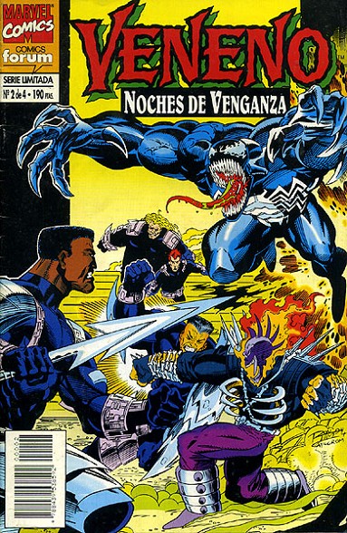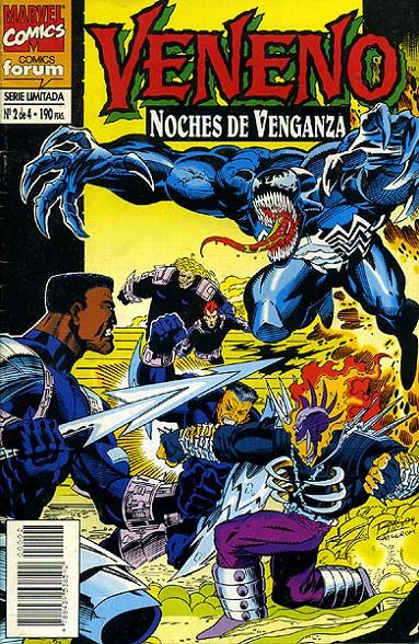 Cuaderno de historietas grapado de 24 páginas interiores en color más cubiertas que contiene la traducción del comic book original Venom: Nights of vengeance número 2 publicados por Marvel Comics en 1994. Serie de 4 volúmenes.