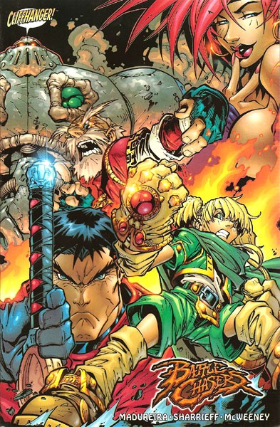 Cuaderno de historietas grapado de 24 páginas interiores en color más cubiertas que contiene la traducción del comic book original Battle Chasers volume 1 número 1 publicado en USA por Wildstorm Studios. Serie de 5 volúmenes.