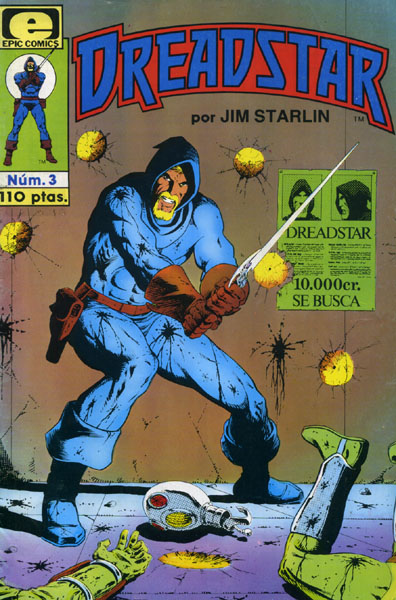 Cuaderno de historietas grapado de 32 páginas interiores en color más cubiertas en color que contiene la traducción del comic book original Dreadstar Volume 1 número 3 publicado en USA por Epic Comics. Serie de 18 volúmenes.
