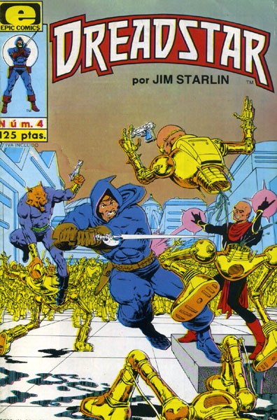 Cuaderno de historietas grapado de 32 páginas interiores en color más cubiertas en color que contiene la traducción del comic book original Dreadstar Volume 1 número 4 publicado en USA por Epic Comics. Serie de 18 volúmenes.