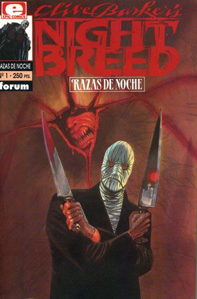 Cuaderno de historietas grapado de 32 páginas interiores en color más cubiertas plastificadas que contiene la traducción del comic book original Clive Barker's Night Breed número 1 publicado en USA por Marvel Comics dentro de su sello Epic. Serie de 16 volúmenes.