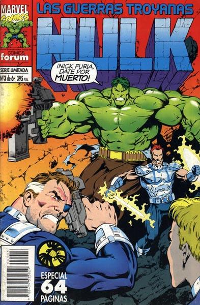 Cuaderno de historietas grapado de 48 páginas interiores en color más cubiertas que contiene la traducción de los comic books originales Incredible Hulk volume 1 números 410 al 412 publicados en USA por Marvel Comics. Serie de 6 volúmenes.