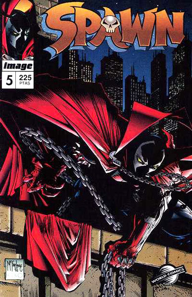 Cuaderno de historietas grapado de 24 páginas interiores en color más cubiertas que contiene la traducción del comic book original Spawn Volumen 1 número 5 publicado en USA por Image Comics. Serie de 94 volúmenes.