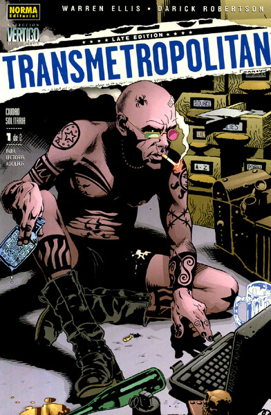 Libro de historietas encuadernado en rústica 48 páginas interiores en color más cubiertas que contiene la traducción de los comic books originales Transmetropolitan números 28 al 29 publicados en USA por DC Comics dentro de su línea Vértigo. Serie de 2 volúmenes.