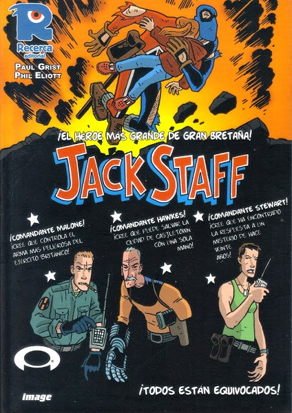 Libro de historietas encuadernado en rústica de 96 páginas interiores en color más cubiertas que contiene la traducción de los comic books originales Jack Staff volume 2 números 3 al 5 publicados en USA por Image Comics.