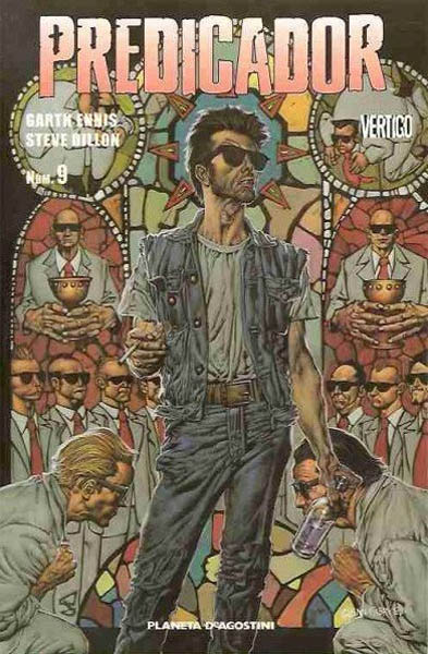 Libro de historietas encuadernado en rústica de 64 páginas interiores en color más cubiertas que contiene la traducción de los comic books originales Preacher números 17 al 18 publicados en USA por DC Comics dentro de su línea Vertigo. Colección de 20 volúmenes.