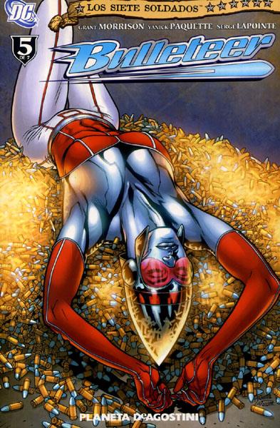 Libro de historietas encuadernado en rústica de 96 páginas interiores en color más cubiertas que contiene la traducción de los comic books originales Seven Soldiers: Bulleteer números 1 al 4 publicados en USA por DC Comics. Serie de 7 volúmenes que recopilan cada una de las siete series y un prólogo y un epílogo.