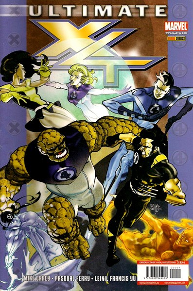 Cuaderno de historietas grapado de 48 páginas interiores en color más cubiertas que contiene la traducción de los comic books originales Ultimate X-Men / Fantastic Four números 1 y 2 publicados en USA por Marvel Comics. Volumen único.