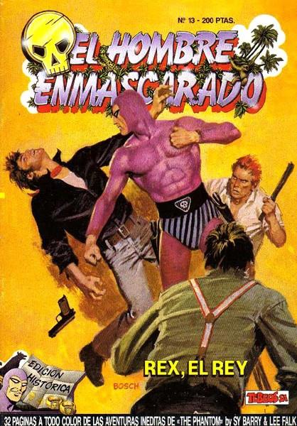 The Phantom, más conocido en España como El Hombre Enmascarado fue creado como tira diaria para la prensa norteamericana por Lee Falk, apareciendo por primera vez el 17 de febrero de 1936. En 1988 Ediciones B publicó El Hombre Enmascarado en una colección de 74 números. Hasta el número 32 los cuadernos fueron de formato vertical , publicando material de las páginas dominicales de Sy Barry desde junio de 1973, que en aquel momento eran inéditas en España, hasta mayo de 1979, siguiendo después con las tiras diarias del mismo autor desde el 10 de diciembre de 1980 hasta noviembre de 1989. A partir del número 33, los cuadernos aparecieron en formato apaisado para poder publicar las tiras diarias de Ray Moore, desde la primera de 1936 hasta el año 1949, es decir que se publicaron los años de Ray Moore en tiras diarias, una etapa en la que recibió ayuda de McCoy hasta que finalmente dejó la serie en sus manos.