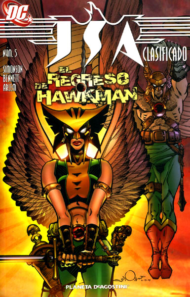 Libro de historietas encuadernado en rústica de 144 páginas interiores en color más cubiertas que contiene la traducción de los comic books originales JSA Classified números 21 al 22 y Hawkgirl números 57 al 60 publicados en USA por DC Comics. Colección de 7 volúmenes.