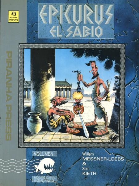 Libro de historietas encuadernado en rústica de 48 páginas interiores en color más cubiertas que contiene la traducción del original Epicurus the Sage Volume 1 publicado en USA por Piranha Press en 1989. Serie de 2 volúmenes.
