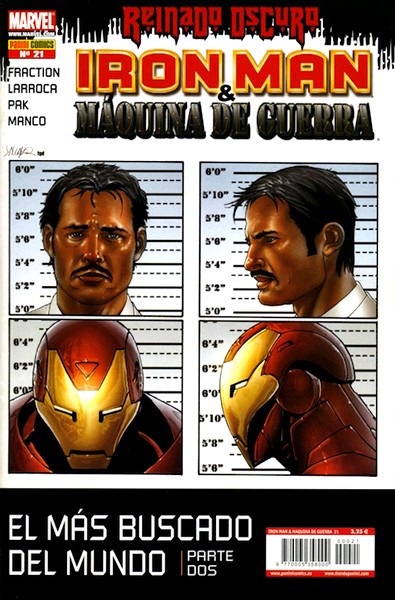 Serie relacionada con “Reinado oscuro”. SHIELD ha caído y Tony Stark se ha convertido en el Hombre Más Buscado del Mundo. Tony Stark y Maria Hill emprenden la huída mientras Pepper se queda al frente de Industrias Stark. Iron Man es ahora el Enemigo Público Número Uno. Mientras tanto, su viejo amigo James Rhodes, también conocido como Máquina de Guerra, tiene sus propios problemas. Le esperan en un lejano país, donde sólo existe la ley del más fuerte.