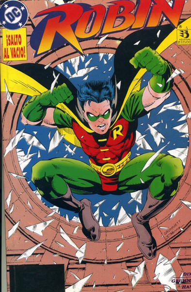 Libro de historietas encuadernado en rústica de 132 páginas interiores en color más cubiertas que contiene la traducción de los comic books originales de Robin números 1 al 5 publicados en USA por DC Comics.