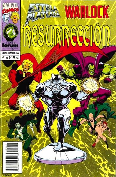 Cuadernos de historietas grapados de 24 páginas interiores en color más cubiertas que contienen la traducción de los comic books originales Silver Surfer / Warlock: Resurrection volume 1 números 1 al 4 publicados en USA por Marvel Comics. Serie de 4 volúmenes.