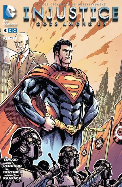 Cuaderno de historietas grapado de 32 páginas interiores en color más cubiertas que contiene la traducción del comic book original Injustice: Gods among us número 9 publicado en USA por DC Comics.