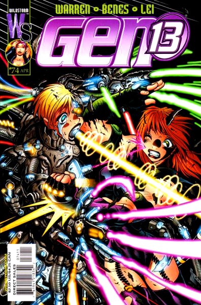 Continued from Gen 13 Mini-Series. The Gen 13 kids are on the run from the organization known as International Operations. It was I.O. through the Genesis Project that gave them all their powers and I.O. wants them back. But they aren't alone as John Lynch, once Director of Operations for I.O., has gone rogue and dedicated himself to helping these kids stay out of I.O.'s clutches. Fairchild, Burnout, Grunge, Freefall, and Rainmaker must all do their best to lay low while still trying to live normal lives. But that is easier said than done. DC Comics acquired Wildstorm at issue 36 even though the cover still had the Image logo.