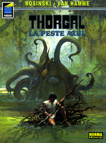 Libro de historietas encuadernado en rústica en formato álbum de 48 páginas interiores en color más cubiertas que contiene la traducción de Thorgal 25. Le mal bleu vigésimo quinto álbum de la serie, publicado en 1999 por Le Lombard para el mercado francobelga.