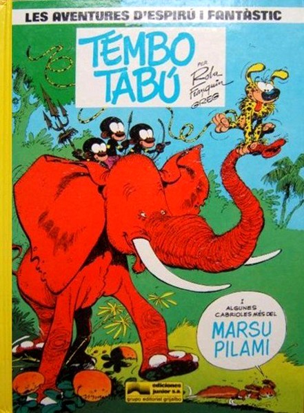 Llibre d'historietes enquadernat en cartoné de 48 pàgines interiors en color que conté la traducció de l'original Spirou et Fantasio 24. Tembo Tabou publicat per Dupuis el 1974 per al mercat francobelga.