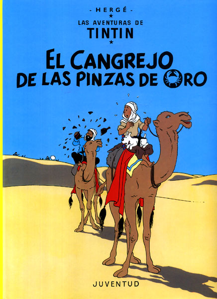 Libro de historietas encuadernado en cartoné en formato álbum de 64 páginas interiores en color más cubiertas que contiene la traducción de la historia original serializada en el periodico Le Soir y publicada posteriormente en color en el album Le Crabe aux Pinces d'Or en 1943 por Casterman para e...