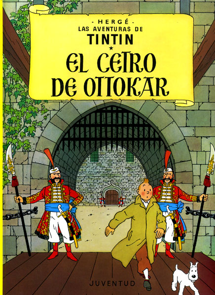 Libro de historietas encuadernado en cartoné en formato álbum de 64 páginas interiores en color más cubiertas que contiene la traducción de la historia original serializada en la revista Le Petit Vingtième y publicada posteriormente en color en el album Le sceptre d'Ottokar en 1947 por Casterman para el mercado francobelga.