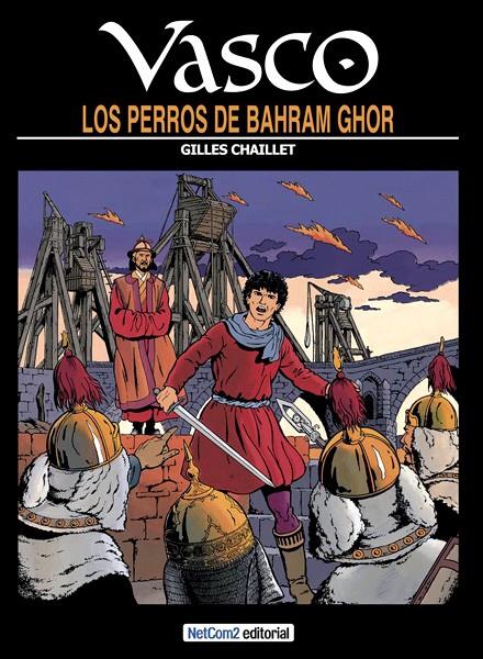 Libro de historietas encuadernado en cartoné en formato álbum de 48 páginas interiores en color más cubiertas que contiene la traducción del original Vasco 10. Les chiens de Bâhrâm Ghör publicado en 1991 por Lombard para el mercado francobelga.Pasan los días y el enemigo cierra el cerco sobre Isfahá...
