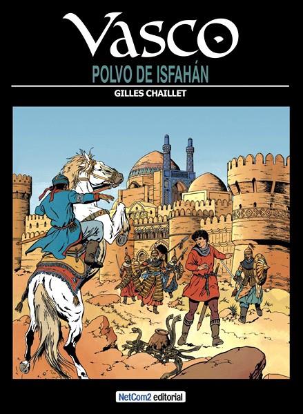 Libro de historietas encuadernado en cartoné en formato álbum de 48 páginas interiores en color más cubiertas que contiene la traducción del original Vasco 9. Poussière d'Ispahan publicado en 1990 por Lombard para el mercado francobelga.