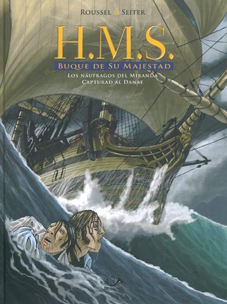 Libro de historietas encuadernado en cartoné de 112 páginas interiores en color más cubiertas que contiene la traducción de los libros originales H.M.S. - His Majesty's Ship 1. Les Naufragés de la Miranda y 2. Capturez la Danaë ! publicados por Casterman entre 2005 y 2006 para el mercado francobelga. Serie de 2 volúmenes.