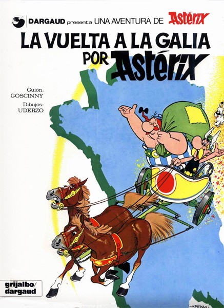 Libro de historietas encuadernado en cartoné de 48 páginas interiores en color más cubiertas que contiene la traducción del original Astérix 5. Le tour de Gaule publicado por Dargaud en 1965 para el mercado francobelga.