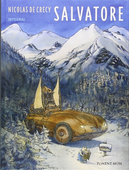 Me habría gustado ponerme en camino de inmediato para ir y decirle lo fuertes que eran mis sentimientos por ella. Pero América Latina queda lejos de aquí… Para conseguirlo, sólo hay una solución: el desplazamiento. Y, quien dice desplazamiento, dice mecánica. Y así, decidí dedicar mi vida a la mecánica. Como una metáfora del sentimiento amoroso. Salvatore, una fábula divertida y singular, traza los destinos paralelos de un perro mecánico que construye un automóvil en secreto para ir en busca de su amada del otro lado del Atlántico, y de una cerda obesa y miope que busca por cielo y tierra al cochinillo que acaba de perder. El relato inacabado de un mundo casi como el nuestro, de la mano del trazo libre y poético de Nicolas de Crécy, por fin reunido en un integral.