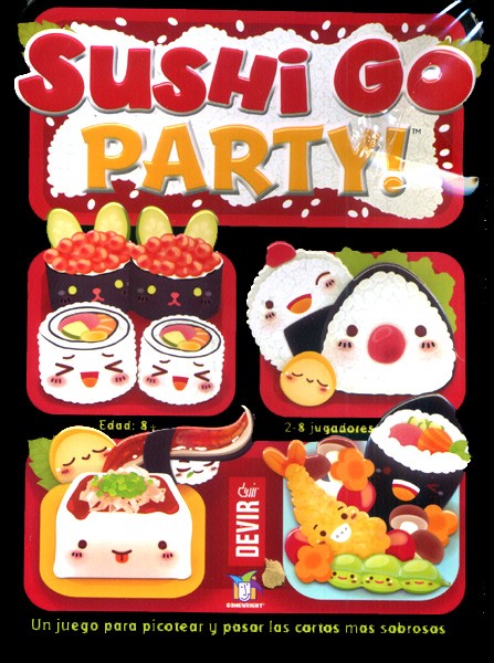 Jugadores: 2 a 8 Duración: 20 minutosedad: 8 a 80 añosSushi Go! Hoy toca cenar a la carta: disfrutad de un festín de lujo a base de maki, sashimi y edamame sin fin.Esta versión incluye el juego básico y muchos más platos. Antes de empezar los jugadores deberán elegir su propio menú entre 20 opciones...