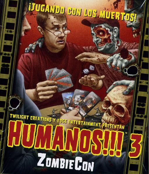 Humanos!!! 3: ZombieCon sitúa a los jugadores en una multitudinaria convención de juegos en busca de cerebros que devorar o candidatos que convertir. Esta expansión también añade un nuevo tipo de carta, las cartas de Humano, que determinan con quién te encuentras y cuánta resistencia opone a tu “cariño”.