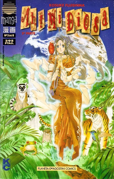 Cuaderno de historietas grapado de estilo manga y género seinen (orientado al público adulto) de 32 páginas interiores en blanco y negro más cubiertas en color y sentido de lectura occidental. Colección de 8 volúmenes.Por fin llega ¡AH,MI DIOSA!, uno de los clásicos del manga contemporáneo. Cuando u...