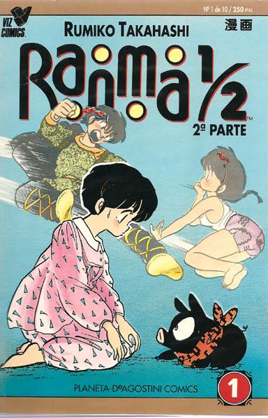 Libro de historietas de estilo manga y de género shonen (orientado al público juvenil) encuadernado en rústica de 40 páginas interiores en blanco y negro más cubiertas en color y sentido de lectura occidental. Serie de 10 volúmenes.La historia trata sobre un chico llamado Ranma Saotome que sufre una...