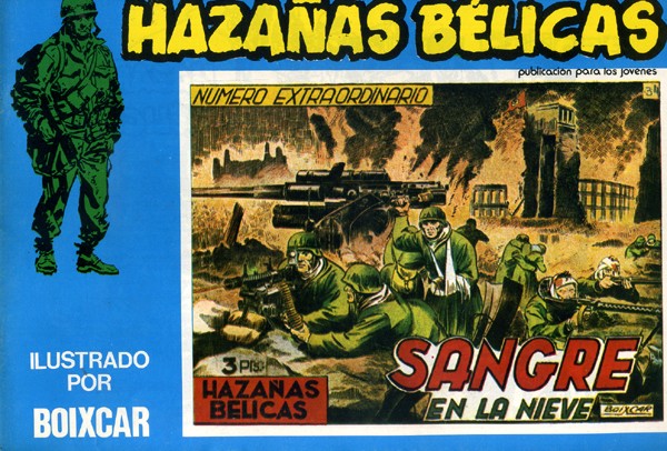 Cuaderno de historietas grapado en formato apaisado de 36 páginas interiores en blanco y negro más cubiertas en color que contiene la reedición realizada en 1973 del material de las colecciones de Hazañas Bélicas publicadas por al editorial Toray. Serie de 187 volúmenes y 4 números extraordinarios.