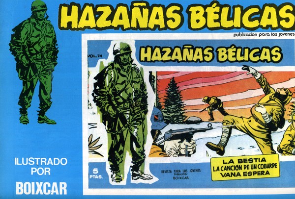 Cuaderno de historietas grapado en formato apaisado de 36 páginas interiores en blanco y negro más cubiertas en color que contiene la reedición realizada en 1973 del material de las colecciones de Hazañas Bélicas publicadas por al editorial Toray. Serie de 187 volúmenes y 4 números extraordinarios.