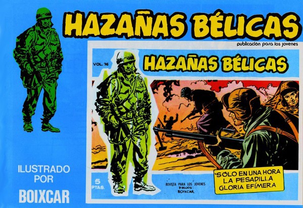 Cuaderno de historietas grapado en formato apaisado de 36 páginas interiores en blanco y negro más cubiertas en color que contiene la reedición realizada en 1973 del material de las colecciones de Hazañas Bélicas publicadas por al editorial Toray. Serie de 187 volúmenes y 4 números extraordinarios.