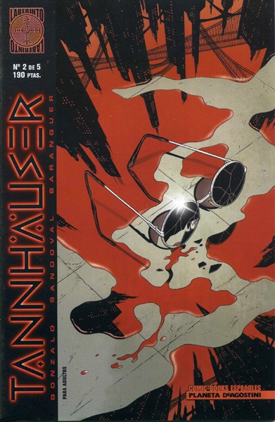 Tannhäuser, obra de Gonzalo Torné (en el guión), de Sergio Sandoval (en los lápices -y grises-) y de Joan Baranguer (en las tintas) es una historia diferente. Cinco individuos (Slater, Brigid, Cairo, Samuel y Wilmer -spoiler: el pringao que no dura ni un asalto-) quieren escapar de un sistema opresor en la Tierra para hallar el paraíso en la Luna. Pero uno de ellos tiene intenciones 'ocultas', como es dar una buena patada al sistema antes de marcharse. Y el sistema no se va a dejar pisotear así como así: tiene sus cyborgs y al peligroso Rosenkrantz. Bien, la historia no es exactamente ésta, pero se aproxima.