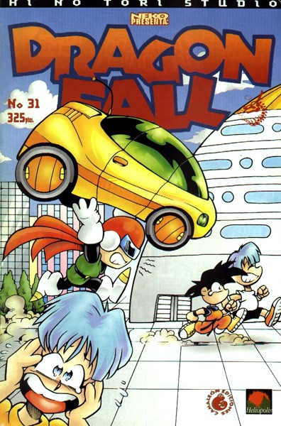 Cuaderno de historietas grapado de estilo manga y de género shonen (orientado al público juvenil) de 32 páginas interiores en blanco y negro más cubiertas en color y sentido de lectura occidental. Serie de 47 volúmenes y 5 números especiales.La serie de cómics Dragon Fall es una parodia de la serie ...