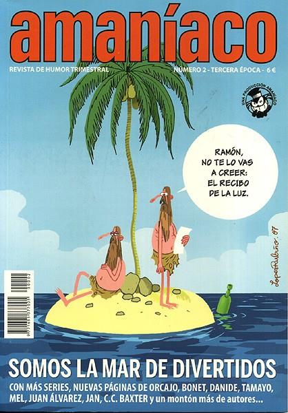 En este número se incorporan al equipo Jesús Martínez del Vas (JMV), Juan Álvarez, Pere Mejan, Mel y Kiko Da Silva. También estrenamos nuevas series: Pérez y Flores asesores, Fargons & Gorgons, Bok y Cinco en conserva. Ya son casi medio centenar de autores los que participan en este proyecto de revista de humor, entre otros: López Rubiño, Orcajo, Tamayo, Bonet, David Lafuente, Jan, Busquet, Joan Tharrats, Ozeluí, J.A. Lopetegi, Carmelo Manresa, Danide, Joan Baranguer... y muchos más. Seguro que, quien más o quien menos encontrará algo que le guste y, si dicen que en la variedad está el buen gusto, eso es lo que tiene este nuevo Amaníaco: mucha variedad. Variedad en cuanto a estilos, personajes y humor. Un humor que, esperamos, guste a todo el mundo o, como mínimo, a la gran mayoría.