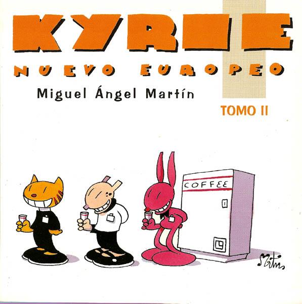 Olvídense de Calvin y Hobbes, Garfield, Carlitos y demás ñoñerías. Kyrie nos presenta la cara amable del controvertido Miguel Angel Martín. Amable hasta el extremo de que muchos de sus seguidores habituales se sorprenderán... sólo al principio. Bajo una blancura estética subyace la crítica más despiadada a las grandes lacras sociales de hoy.