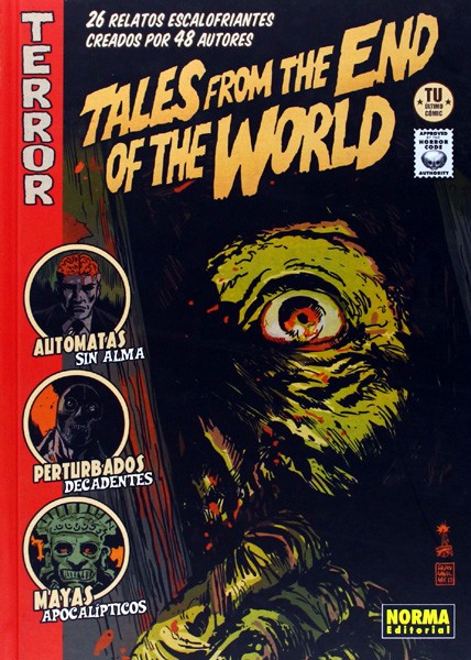 UNA FANTÁSTICA COMPILACIÓN DE 26 HISTORIAS CORTAS DE TERROR FIRMADAS POR 48 AUTORES. En la línea de Barcelona TM, Revolution Complex y Valentia llega este nuevo tomo de historias cortas firmadas por diferentes autores. Esta vez el hilo que une tantos relatos y tan buenos autores es tan antiguo como interesante: las historias de terror, ya sean apocalípticas, post apocalípticas, sobre cualquier religión o mitología o más intimistas. Tales from the end of the world es un homenaje a las míticas publicaciones de los 60 y 70 como Creepy, 1984 o Eerie que marcaron a toda una generación y