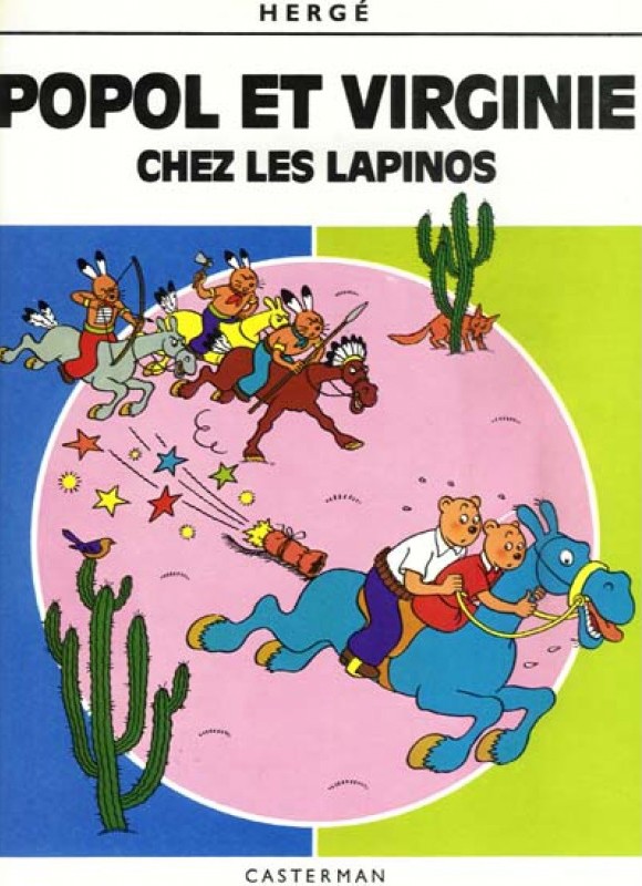 C'est en 1934 que paraissent pour la première fois les aventures de Popol et Virginie au pays des Lapinos, dans Le Petit Vingtième. Une fantaisie animalière narrant les aventures au Far West d'un chapelier, l'ourson Popol, flanqué de sa Virginie, qu'Hergé relate dans un style à la fois naïf et enjoué. Ce n'est qu'en 1948 qu'il en reprend les soixante planches. Mises en couleurs, elles paraissent dans le journal Tintin. L'album sort en 1952, à la même époque que les albums de JO ET ZETTE.
