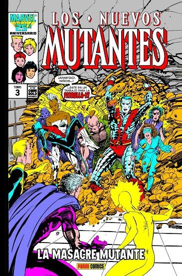 Libro de historietas encuadernado en cartoné de 696 páginas interiores en color más cubiertas que contiene la traducción de los comic books originales The New Mutants números 35 al 54, The New Mutants Annual número 2 y 3, The Uncanny X-Men Annual 10 y Web of Spider-Man Annual 2 publicados en USA por Marvel Comics.